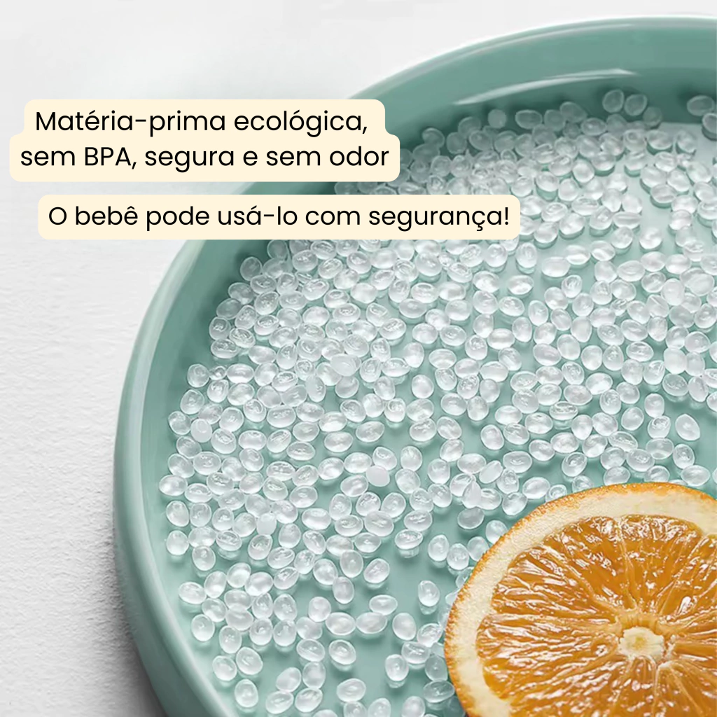 Feito com matéria-prima ecológica, sem BPA, é seguro e sem odor, permitindo que seu bebê use sem preocupações. Resistente a quedas, ele é prático e funcional!