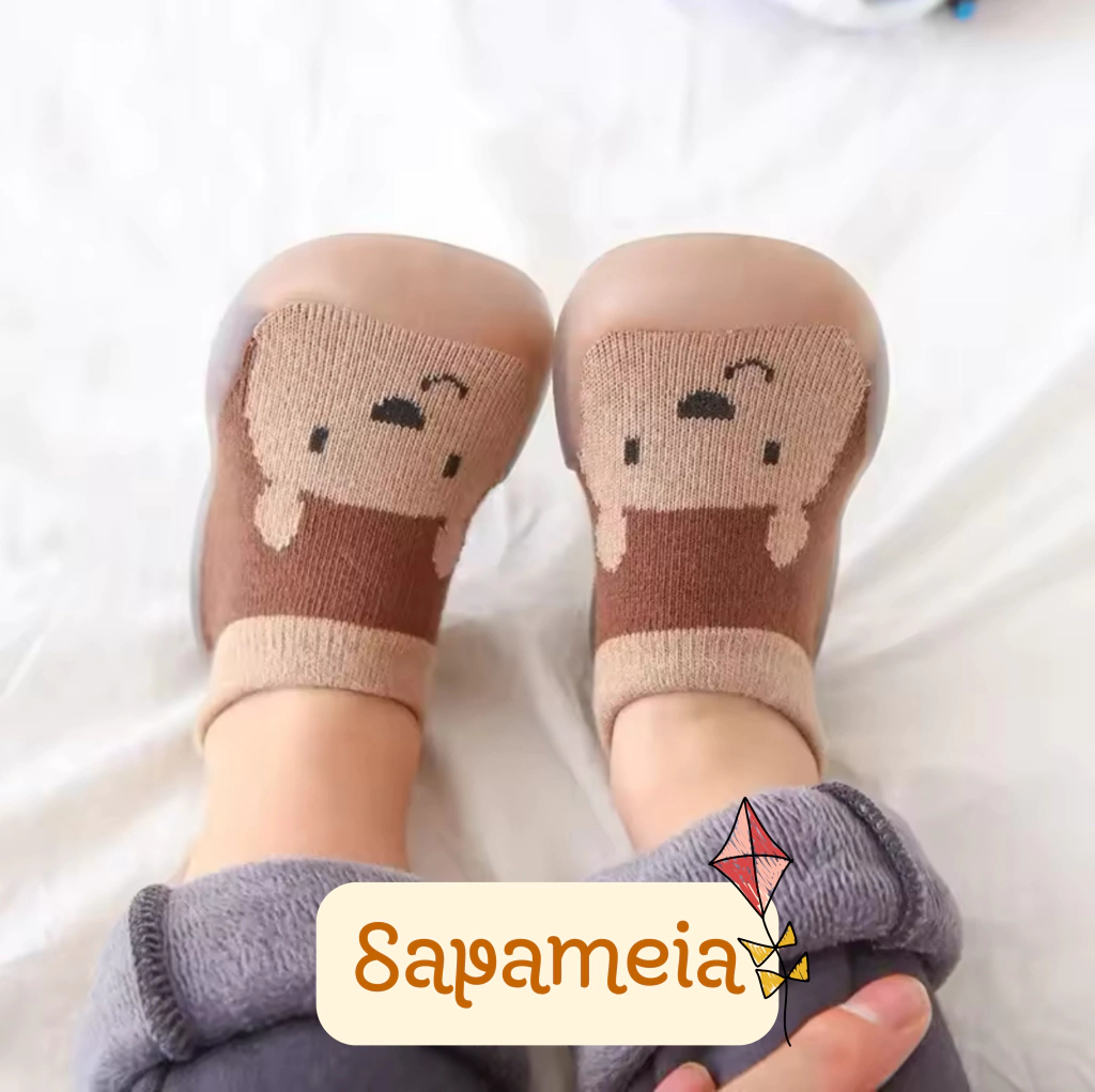 Sapameia: O sapato antiderrapante perfeito para os pequenos exploradores! Com sola de borracha que garante segurança e estabilidade, é ideal para o uso em casa, especialmente para crianças que adoram andar de meias no chão.